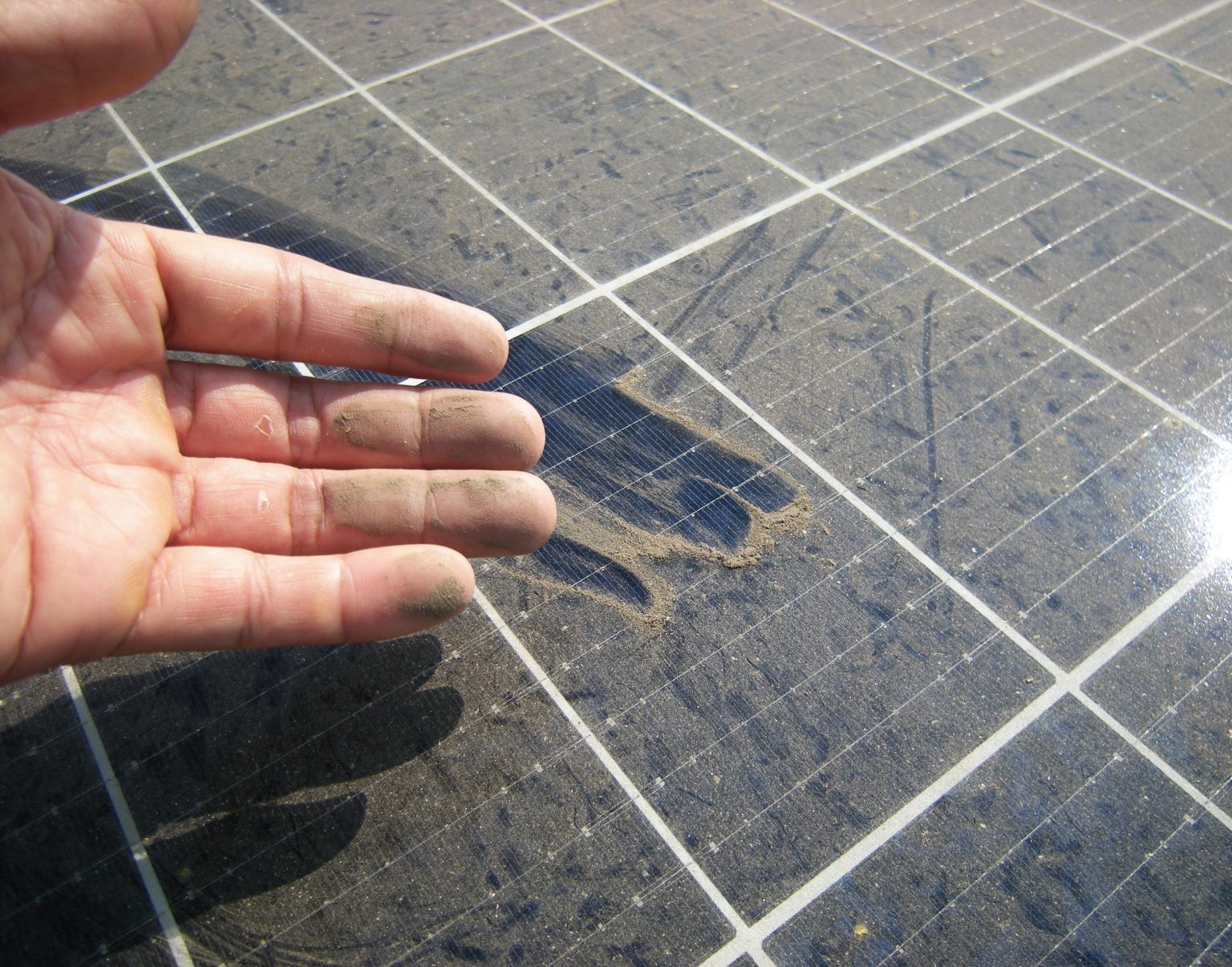 Nach längeren Trockenperioden: Staub und Schmutz sammeln sich in regenfreien Phasen besonders stark auf den Modulen.